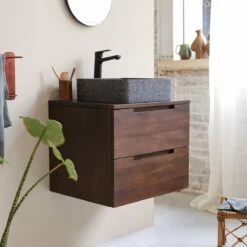 Nova Solid Sheesham And Pink Premium Terrazzo Vanity Unit 80 Ref. 4733
