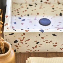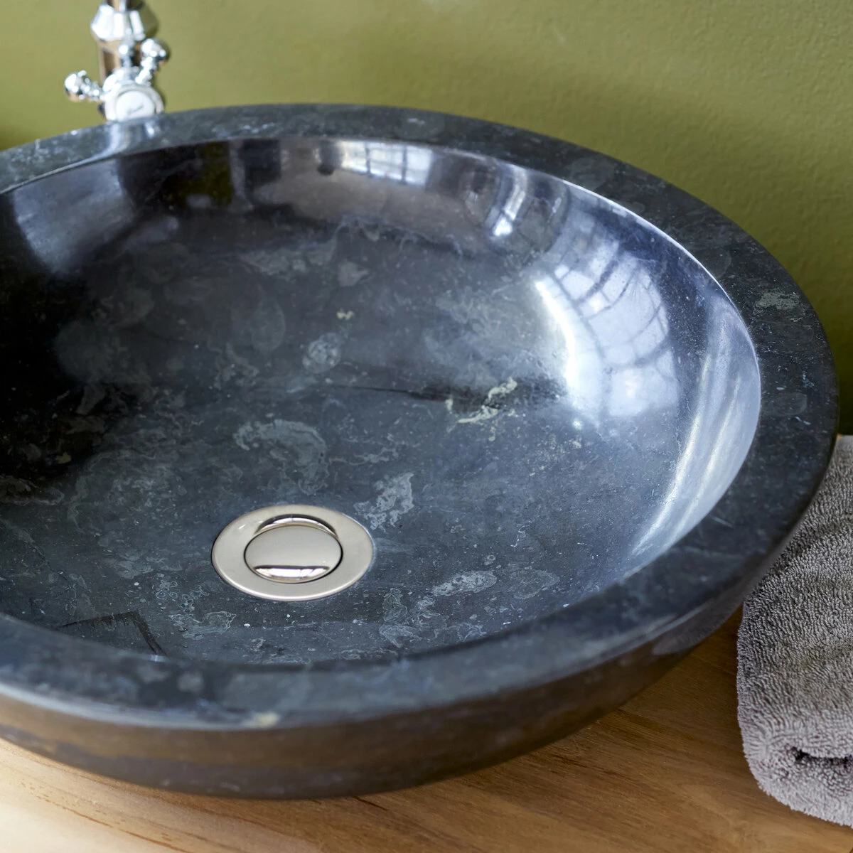 With its soft lines and high-quality material, the black Calypso marble basin adds subtle elegance to all bathroom styles! Made in an unusual material, soft to the touch and once again very fashionable in today’s interior design, it brings a beautiful modernity to the most traditional bathrooms! Its minimalist design and the depth of its colour make it an essential part of everyday well-being. It is easy to install and works equally well with light or dark wood furniture.