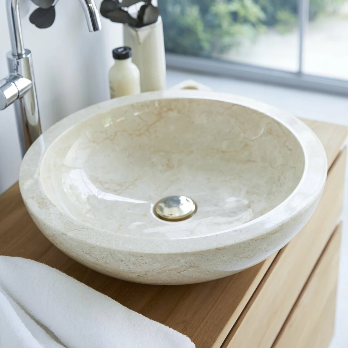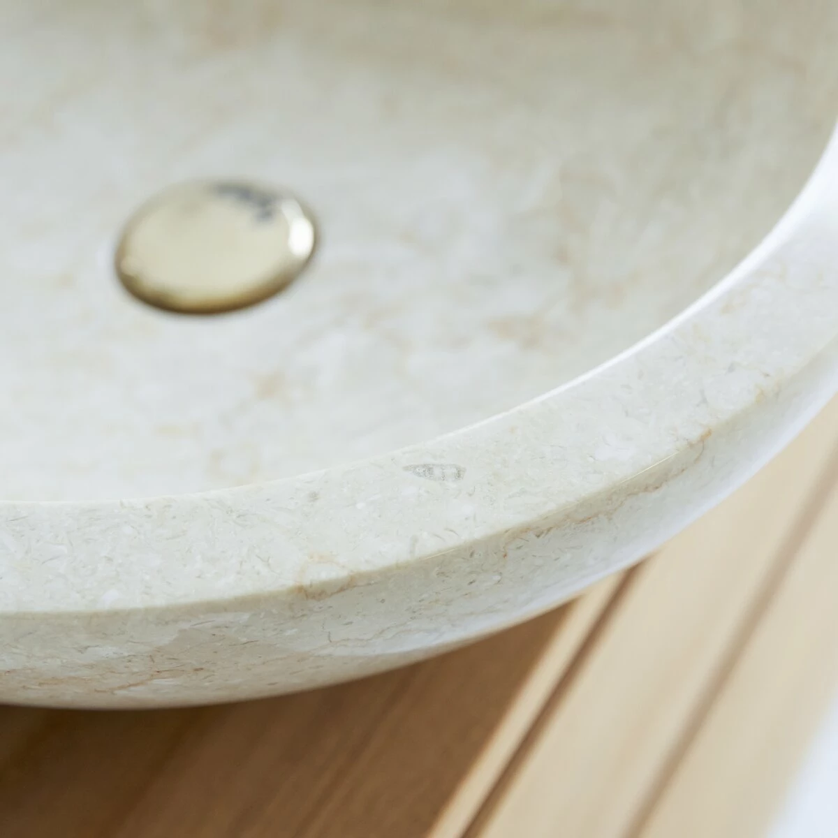 The Calypso Cream marble washbasin will stylishly complement . Made from a fine material that is once again taking centre stage in interiors, it adds a touch of modernity to the most classic bathrooms. Its contemporary design, texture and soft touch make it a must-have piece for your day-to-day well-being. Very easy to install, this marble basin is also available in and .