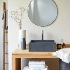 The Ciro washbasin benefits from the charm and easy maintenance of stone with premium terrazzo (on trend right now!)