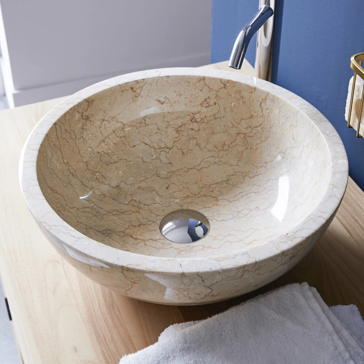 A beautiful hemisphere shaped with a smooth matte cream finish. Subtly elegant, this cream sink can bring a sleek, natural aesthetic to your . As a small compact design, with a diameter of 36 cm, this is quality marble at a great price.
