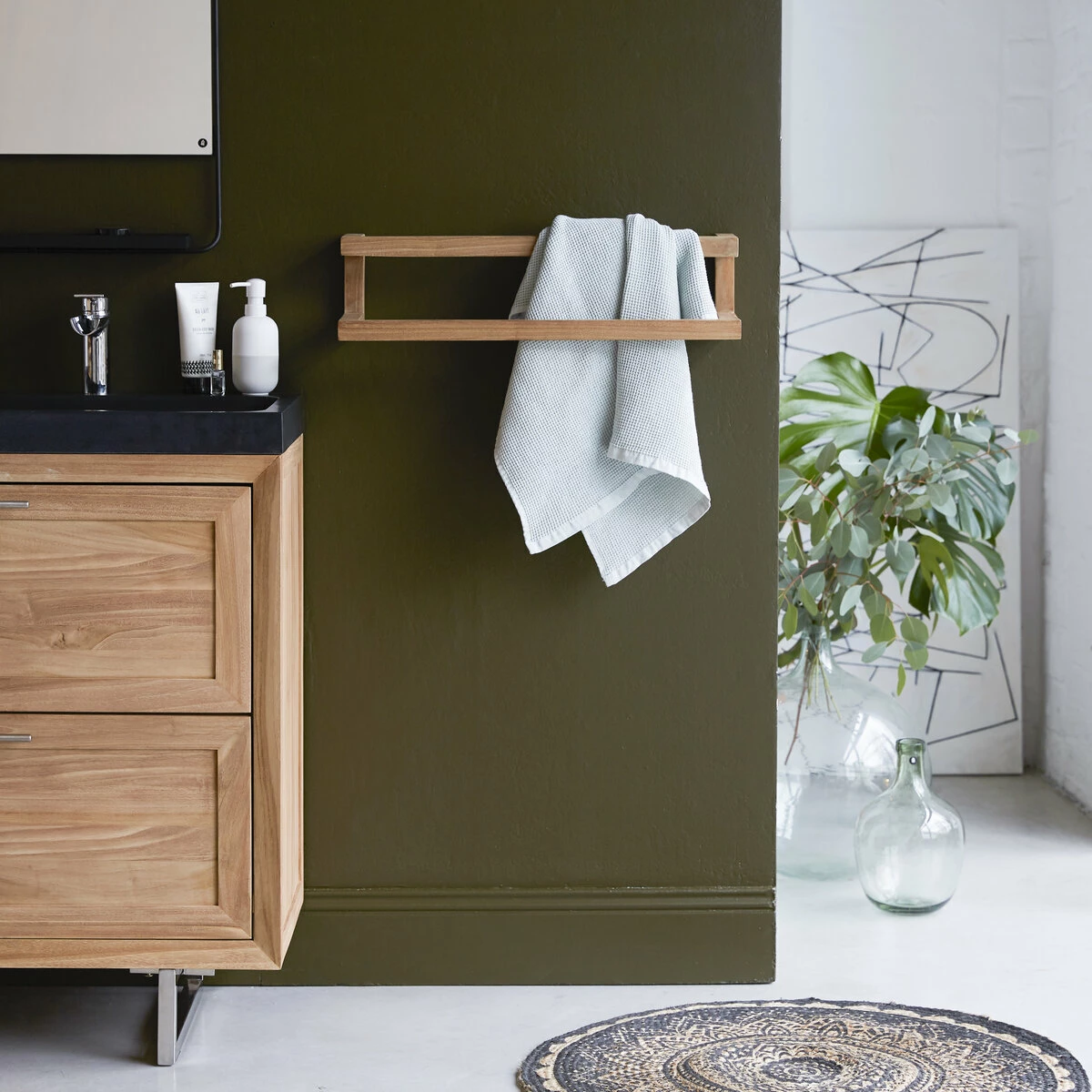 Made from FSC® certified teak, this towel holder brings a warm look to your bathroom. It has an original and practical design.