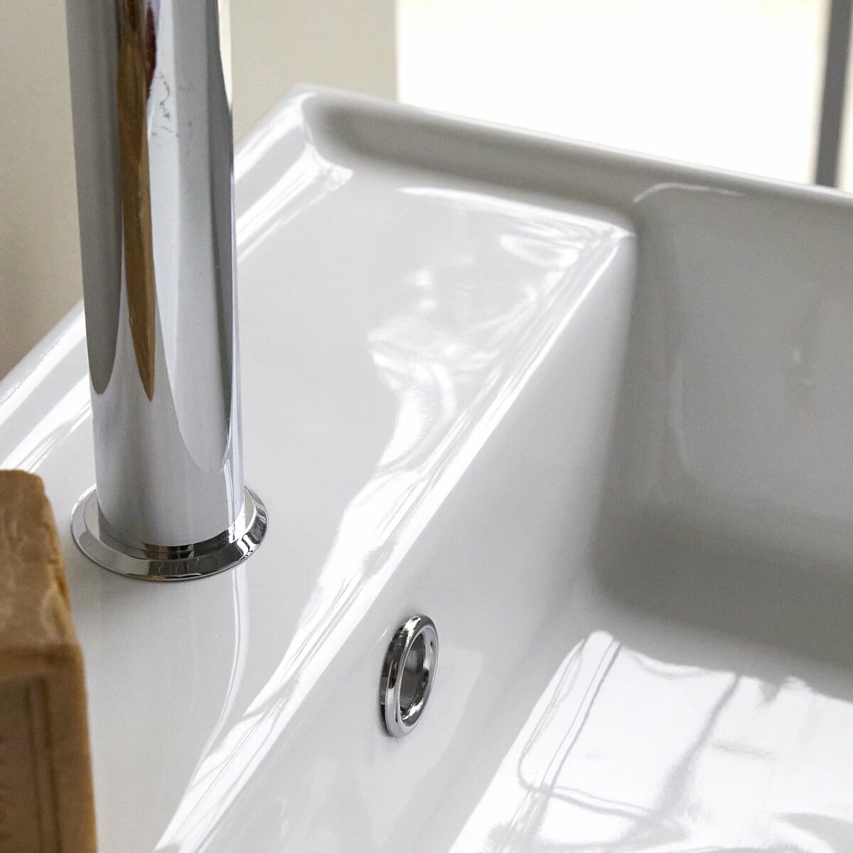 The brilliant, white ceramic and smooth finish combine perfectly with the warm tones of wood, making this washbasin the perfect companion piece to a solid wood cupboard and washstand. to see some of the options.