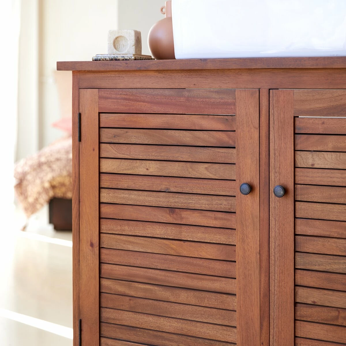 The Loggia 97 solid acacia FSC® certified bathroom washstand combines the authenticity of a solid wood with the style of laminated doors. Designed to accommodate a washbasin, it has great storage space! The wood is resistant to moisture, which makes it easy to care for. Combine this piece with and the for a bathroom with natural charm and character.