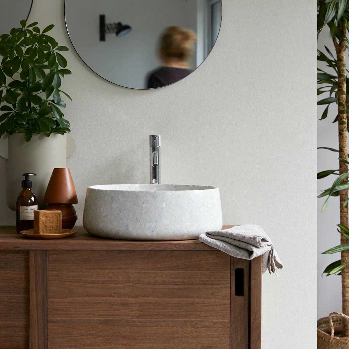 The Milos terrazzo effect basin is also available in a square version . Discover .