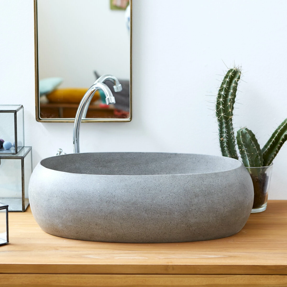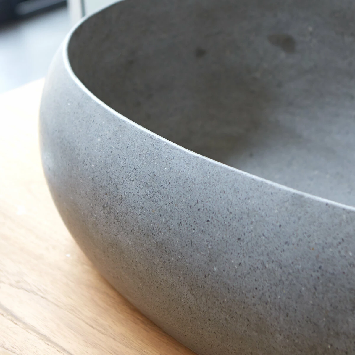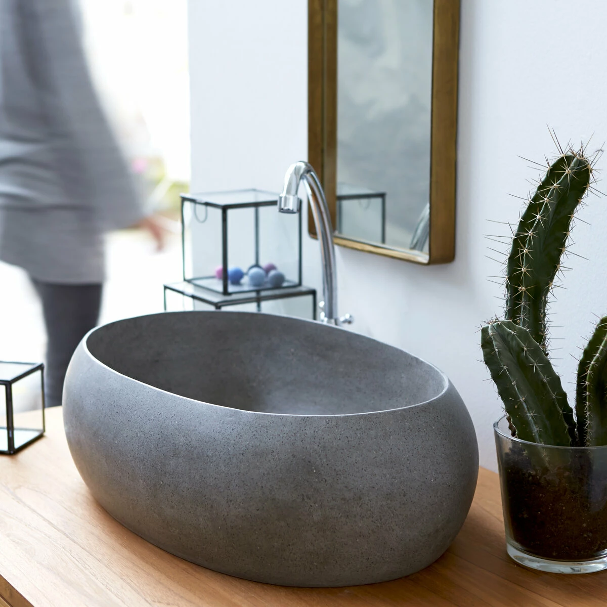 Give your bathroom a modern and elegant touch with this cauldron-shaped, grey, terrazzo concrete washbasin – also known as granito. Its chic and sophisticated design will give your home a touch of unique style. The grey concrete colour gives the basin a stylish urban presence that can transform a bathroom space. Its rounded shape and smooth finishes will make your bathroom feel like a calmer and more relaxing place to be.