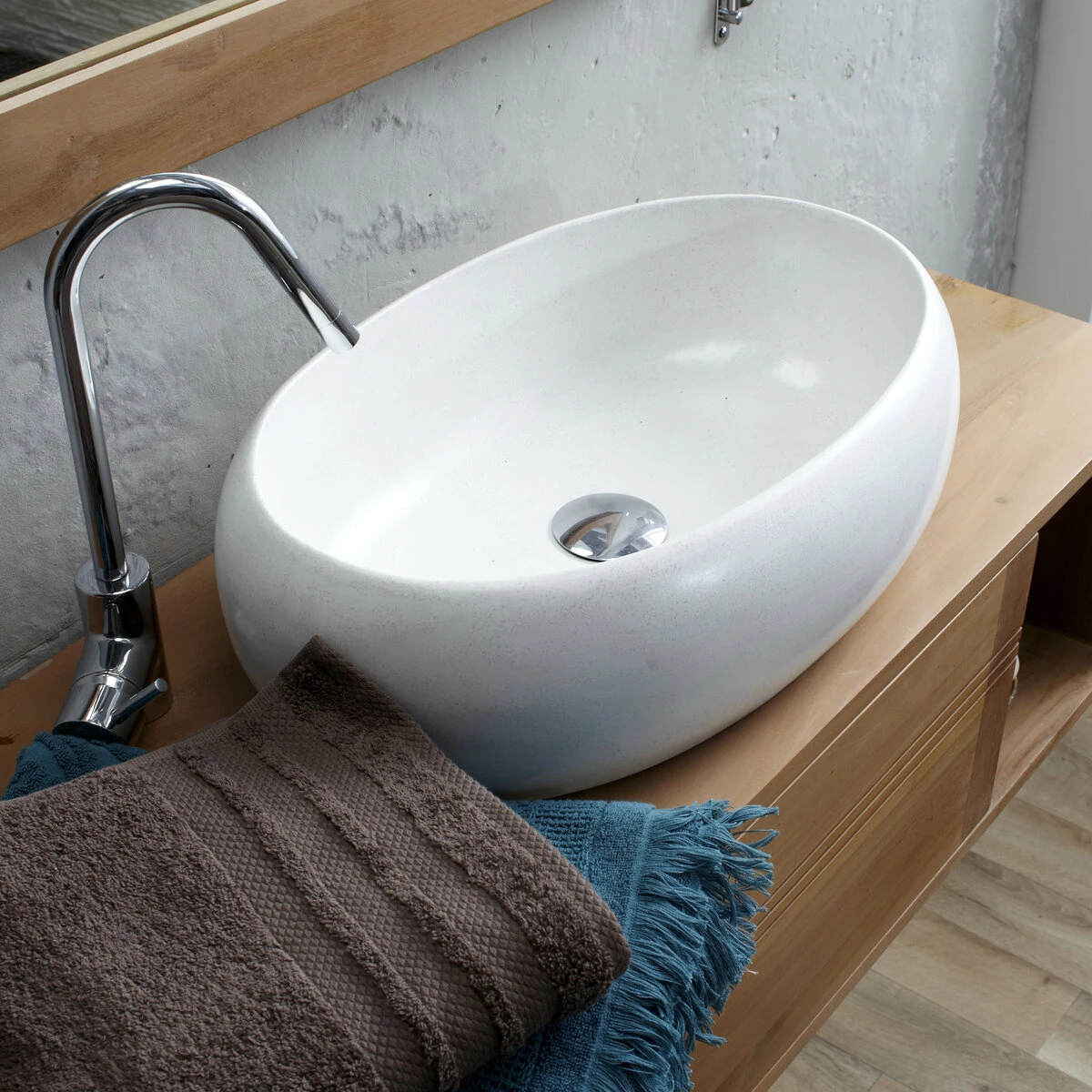 This small oval sink is a superb addition to . Ideal, when matched with one of our bathroom cabinets, it can transform into a place of serenity and well-being!