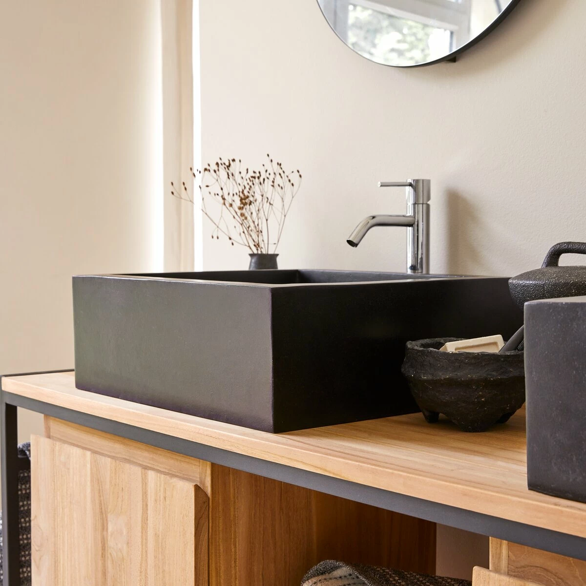 You will love the black satin hue that will give your bathroom an urban, chic look. Its squared shape and smooth finish will give your bathroom a contemporary touch. These characteirstics all make the washbasin blend perfectly with our bathroom furniture in metal and wood.