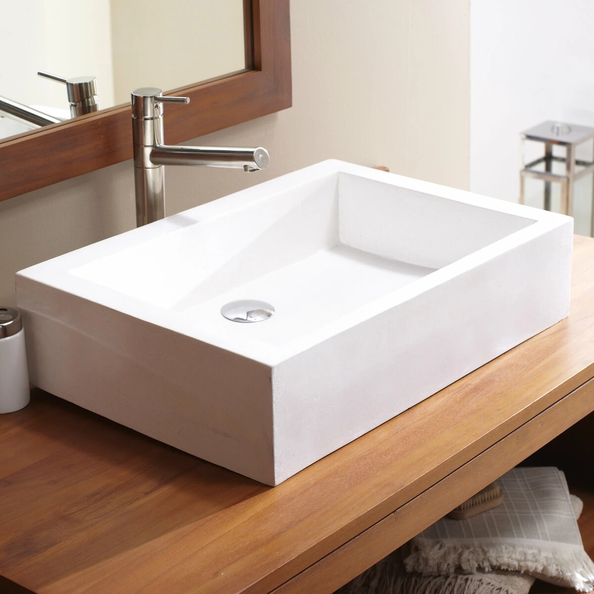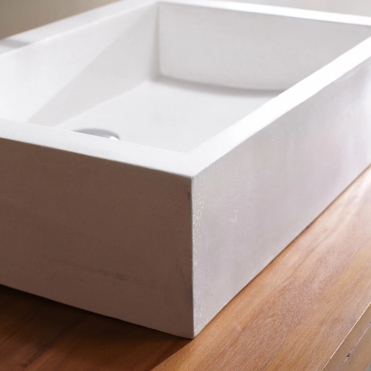 Bring some elegance to with this rectangular terrazzo washbasin. The white colour and smooth finish speak of simplicity and purity. This granito washbasin could be a great piece to enhance the ambience of any bathroom space.