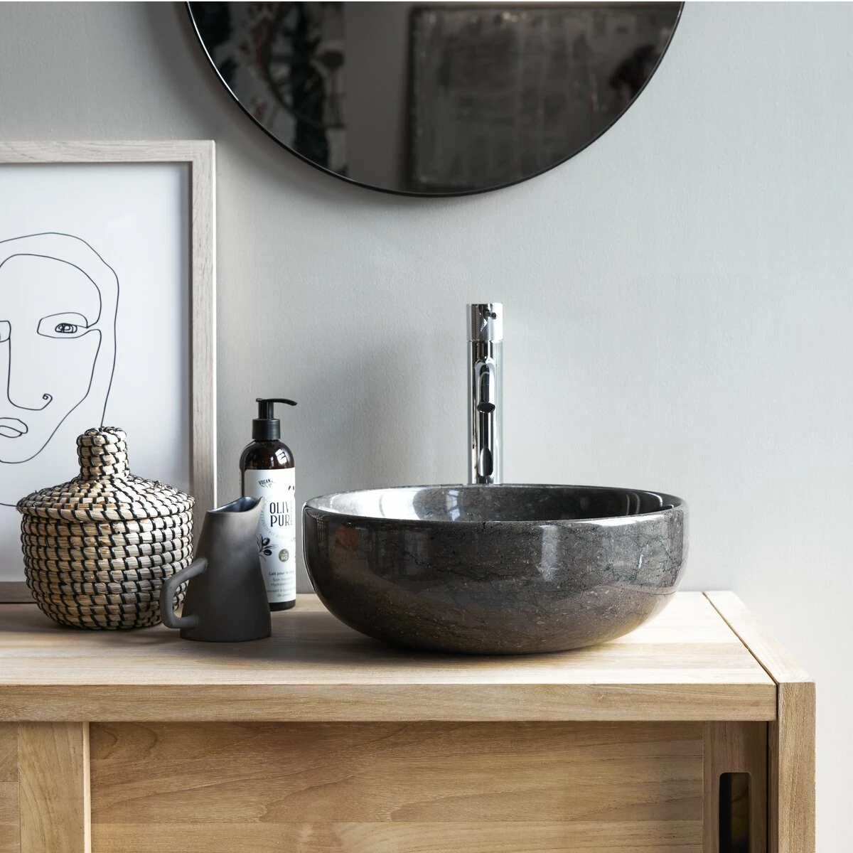Bring a touch of style with the Pia dark grey marble basin! Marble is a noble material that is making a big comeback in our modern interiors… We’re happy to say it looks good in every room of the house, including the bathroom!