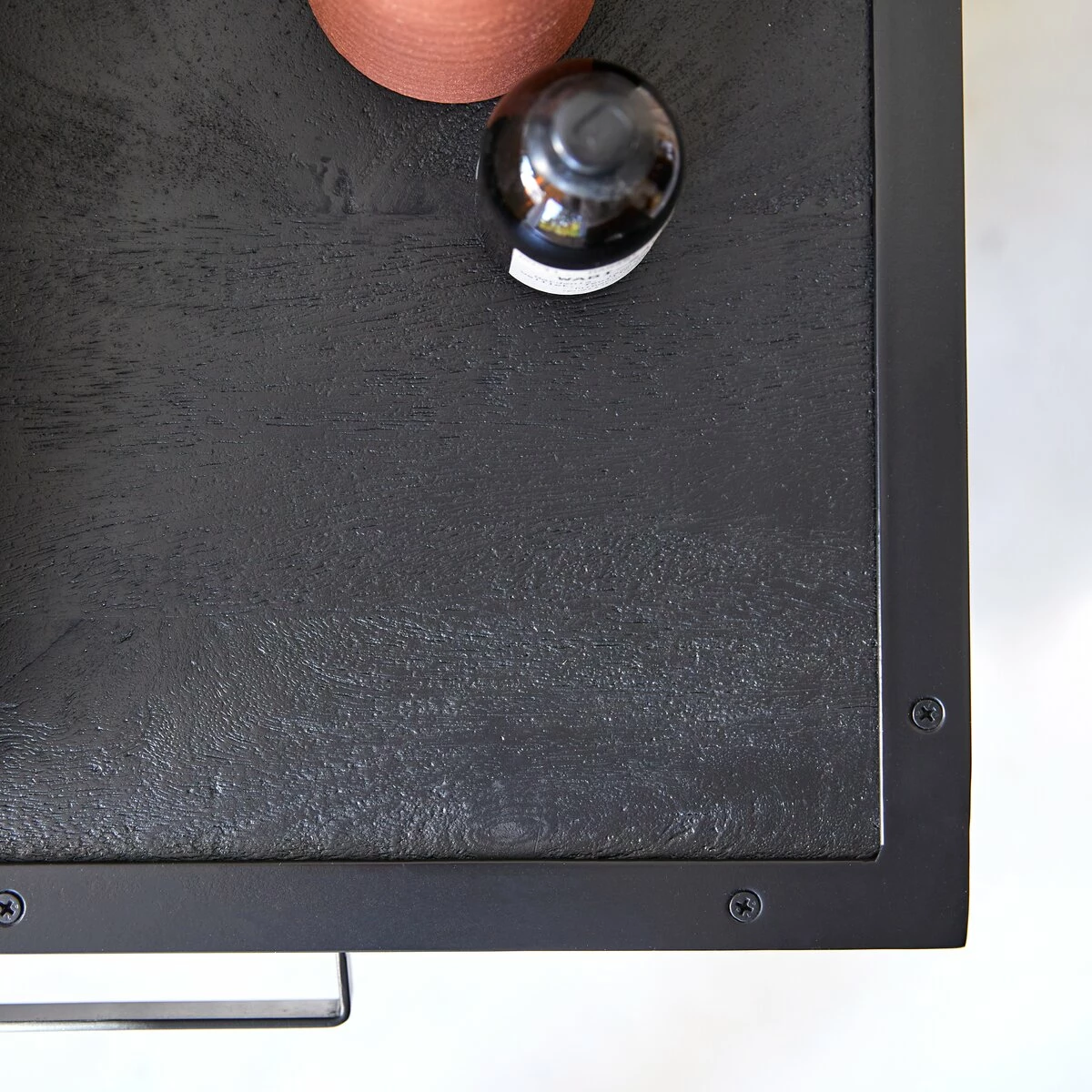 We love the decidedly industrial style of the Romy metal and mango vanity cabinet.