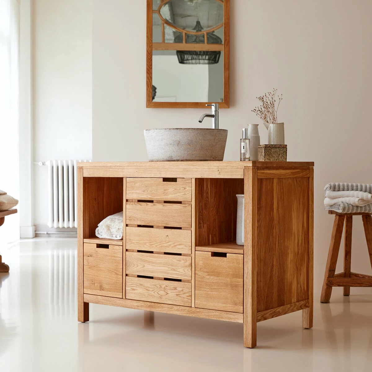 Bring some solid oak into with the Serena washstand! This beautifully, hand-crafted washstand combines the durability and simple elegance of solid oak FSC® certified with high-end finishes and great storage space.