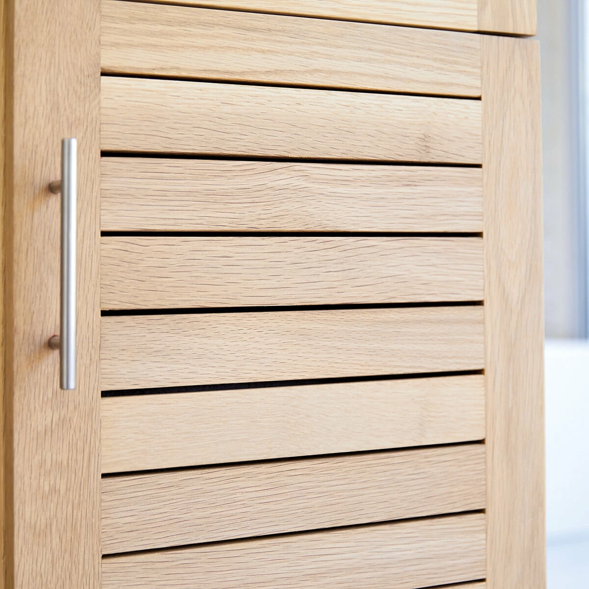 The tall oak bathroom unit goes perfectly with , available in 165 cm, 125 cm and 85 cm versions. It is the perfect addition to your existing furniture: its understated lines make it incredibly versatile.