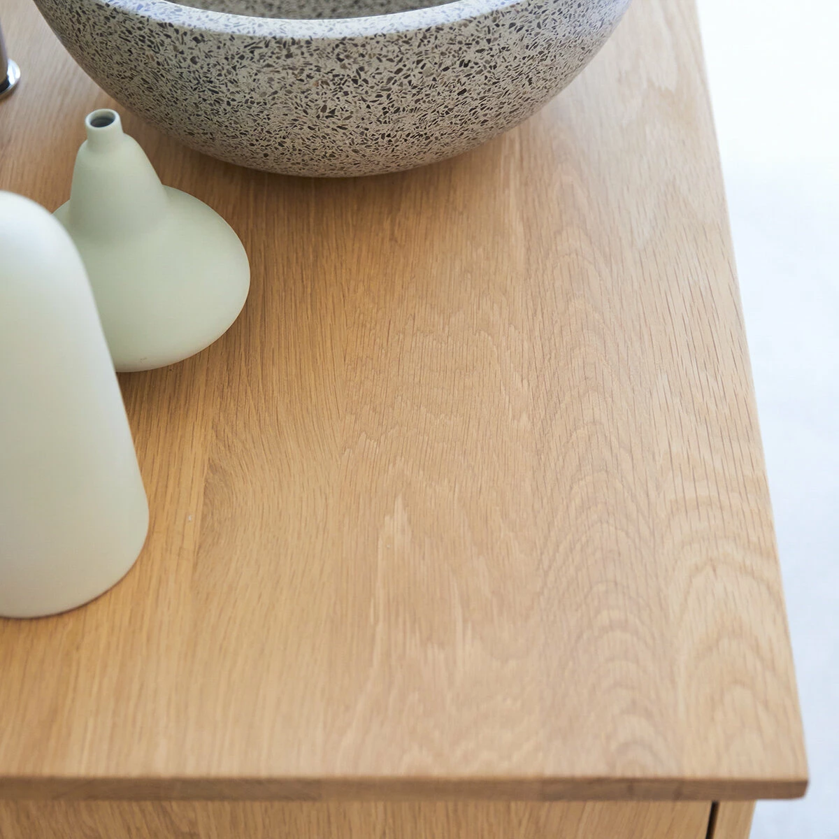 The Soho Oak 165 vanity unit will be the focal point of your bathroom and allow you to store your bathroom linen as well as all your accessories and hygiene or beauty products in style! We love the slatted fronts of the doors and drawers, the generous storage capacity and the pale colour of the solid wood.