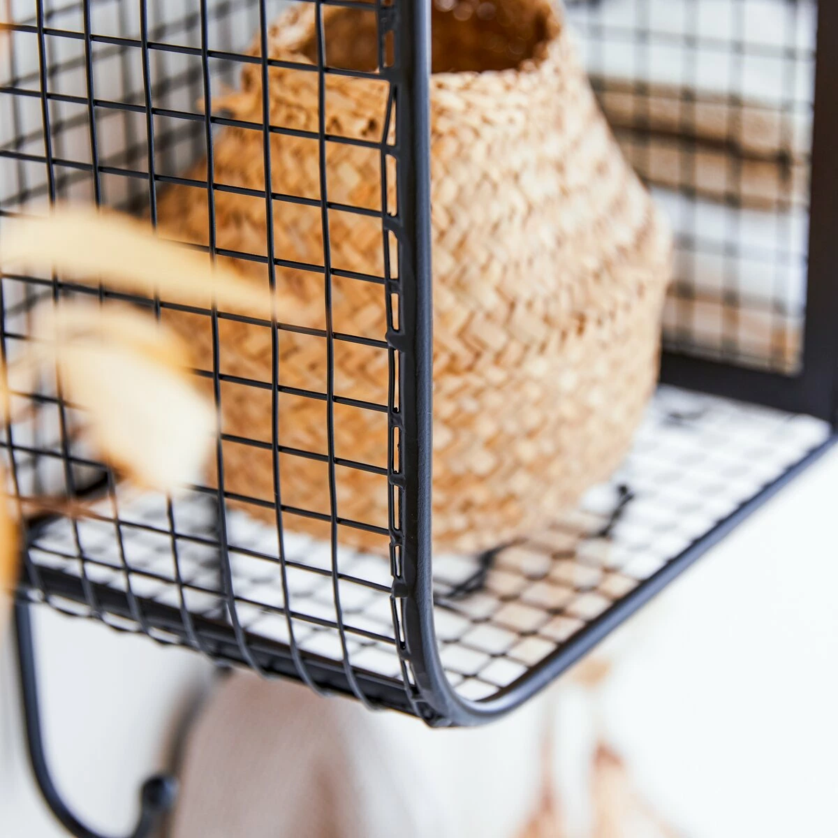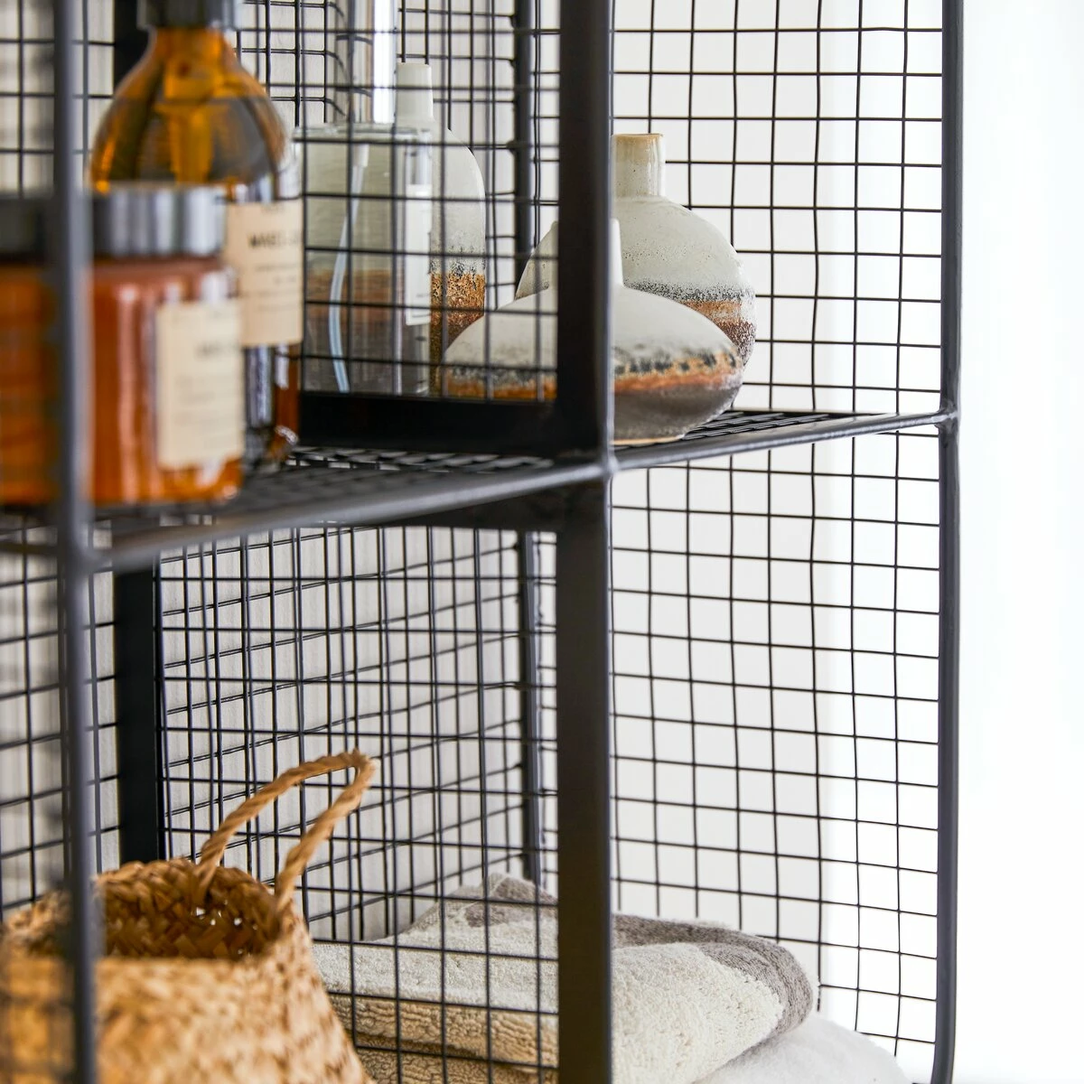 Bring an urban touch to your bathroom with this square metal wall shelf