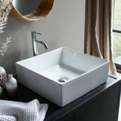 Crafted in a highly visual and easy to care for material, the Thaïs square basin in confetti terrazzo combines elegance and distinctive personality. We like the speckled effect of the terrazzo, made of a blend of recycled stones, and the line with softened angles. The beautiful contemporary design will enliven any bathroom with an imaginative touch. The varnished finish makes it easy to keep clean on a daily basis and it will become the focal point of your bathroom.